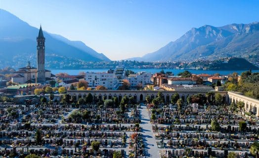 Il “Nuovo cimitero”, inaugurato il 6 agosto 1882, ha un ingresso e un famedio in stile liberty.