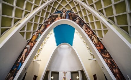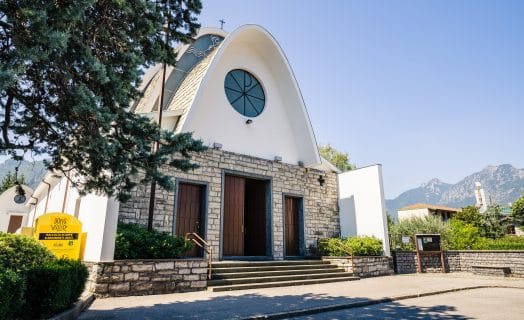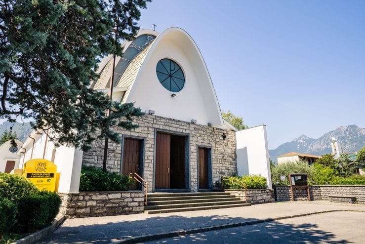 The religious architectural style is very distinctive, thanks to its curious tent shape, and it was designed by the architect Carlo Wilhelm. Inside, a fresco can be admired that depicts the Universal Judgement by Orlando Sora, an artist closely linked to the city of Lecco.