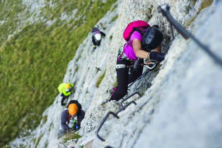 From the car park of the cable car station, take path number 1, walk uphill for about 20 minutes and then take the diversion to the left, heading to the start of the ferrata
