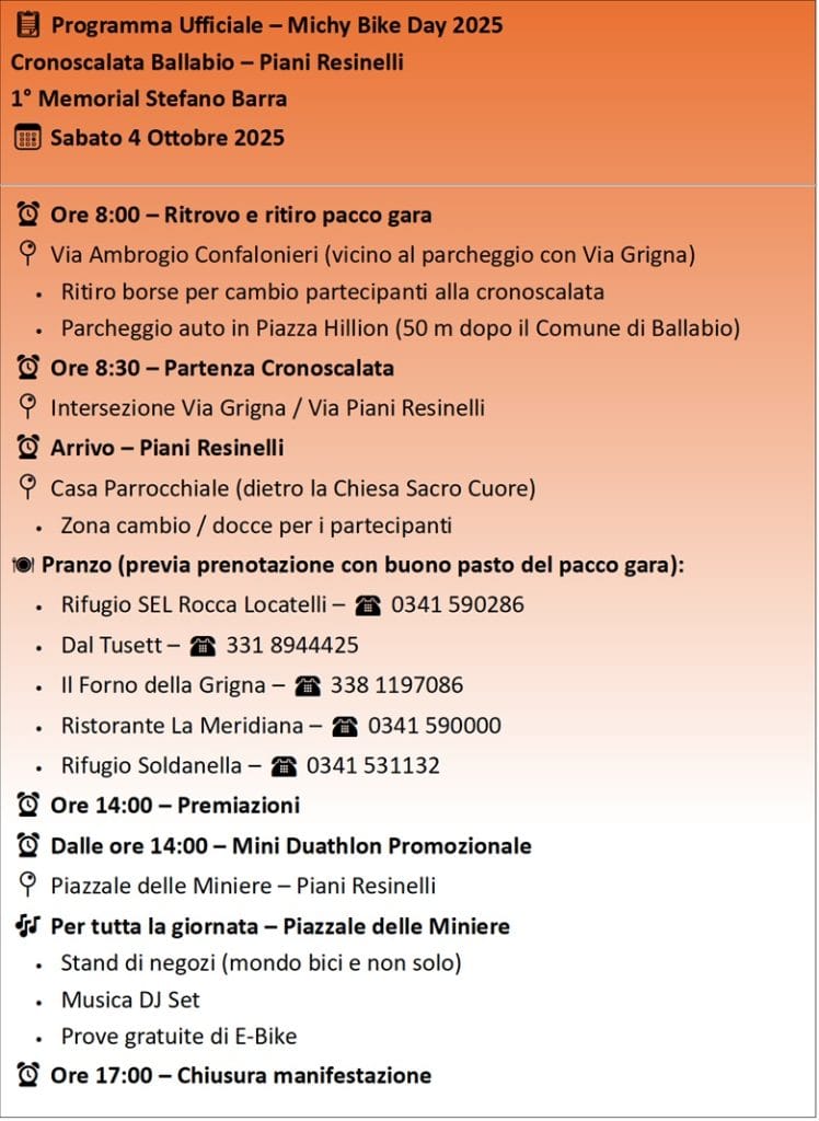 A route from Ballabio to the suggestive Pian dei Resinelli to spend a day of sport and cycling passion on one of the most popular climbs among bikers! The race is open to everyone and it will have separate rankings for each category (BDC, MTB, E-bike).