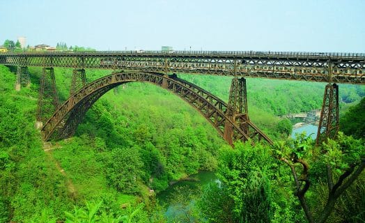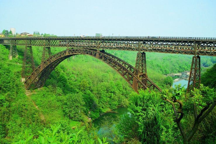 The San Michele Bridge in Paderno d’Adda, also known as Paderno Bridge, connects the towns of Paderno D’Adda and Calusco d’Adda, as well as the provinces of Lecco and Bergamo. This incredible feat of engineering carries both rail and road traffic over a distance of 266 metres.