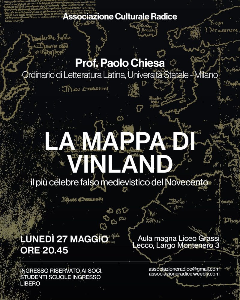 Poco prima del 1960 venne messo in vendita sui circuiti antiquari un planisfero, vergato su una pergamena medievale, all’interno del quale appariva per la prima volta una parte del continente americano. Gli studi più recenti hanno dimostrato che si tratta di un falso, uno dei più clamorosi e affascinanti che riguardi documenti medievali. Tutto questo verrà raccontato da Paolo Chiesa, professore ordinario di Letteratura latina medievale all’Università Statale di Milano.