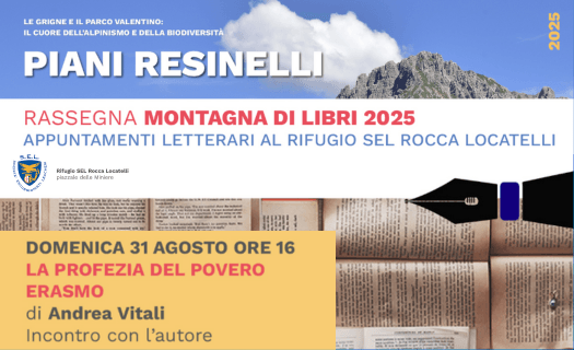 All’interno dell’iniziativa “Le Grigne e il Parco Valentino: il cuore dell’alpinismo e della biodiversità” e come parte della rassegna “Montagna di Libri“, è proposto un incontro con l’autore Bellanese Andrea Vitali che presenterà il suo ultimo romanzo “La profezia del povero Erasmo“.