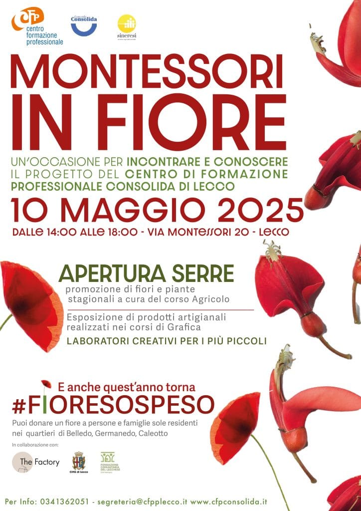 Il Centro di Formazione Professionale Consolida apre nuovamente le porte alla primavera con Montessori in Fiore, l’evento che ogni anno trasforma la sede di via Montessori 20 a Lecco in uno spazio di incontro, condivisione e scoperta.