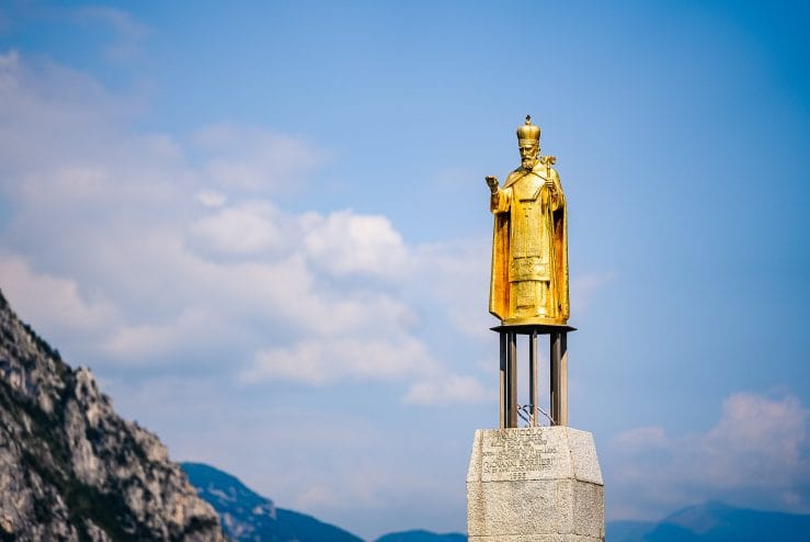 Passeggiando sul lungolago, in corrispondenza del monumento di Antonio Stoppani alla foce del Gerenzone, non si può non notare tra le acque del Lago di Como la statua di San Nicolò che con il suo colore dorato riflette la luce del sole. San Nicolò è il patrono della città e il protettore dei naviganti e dei barcaioli.